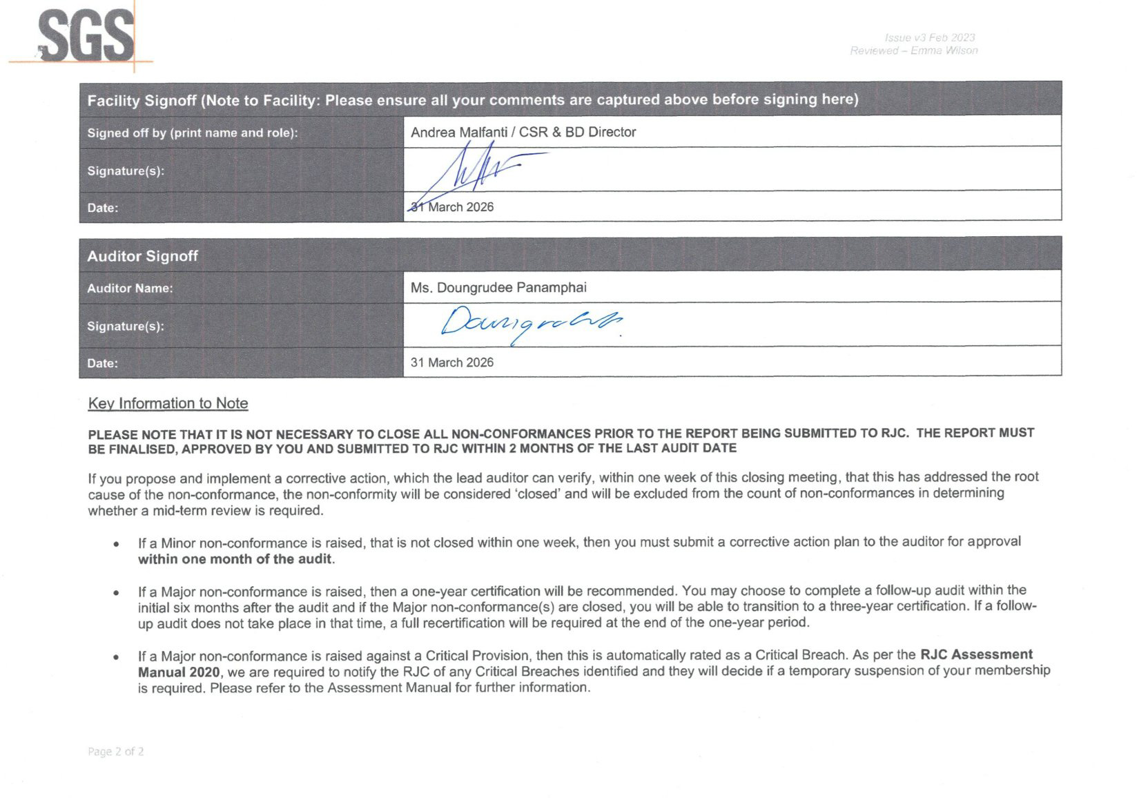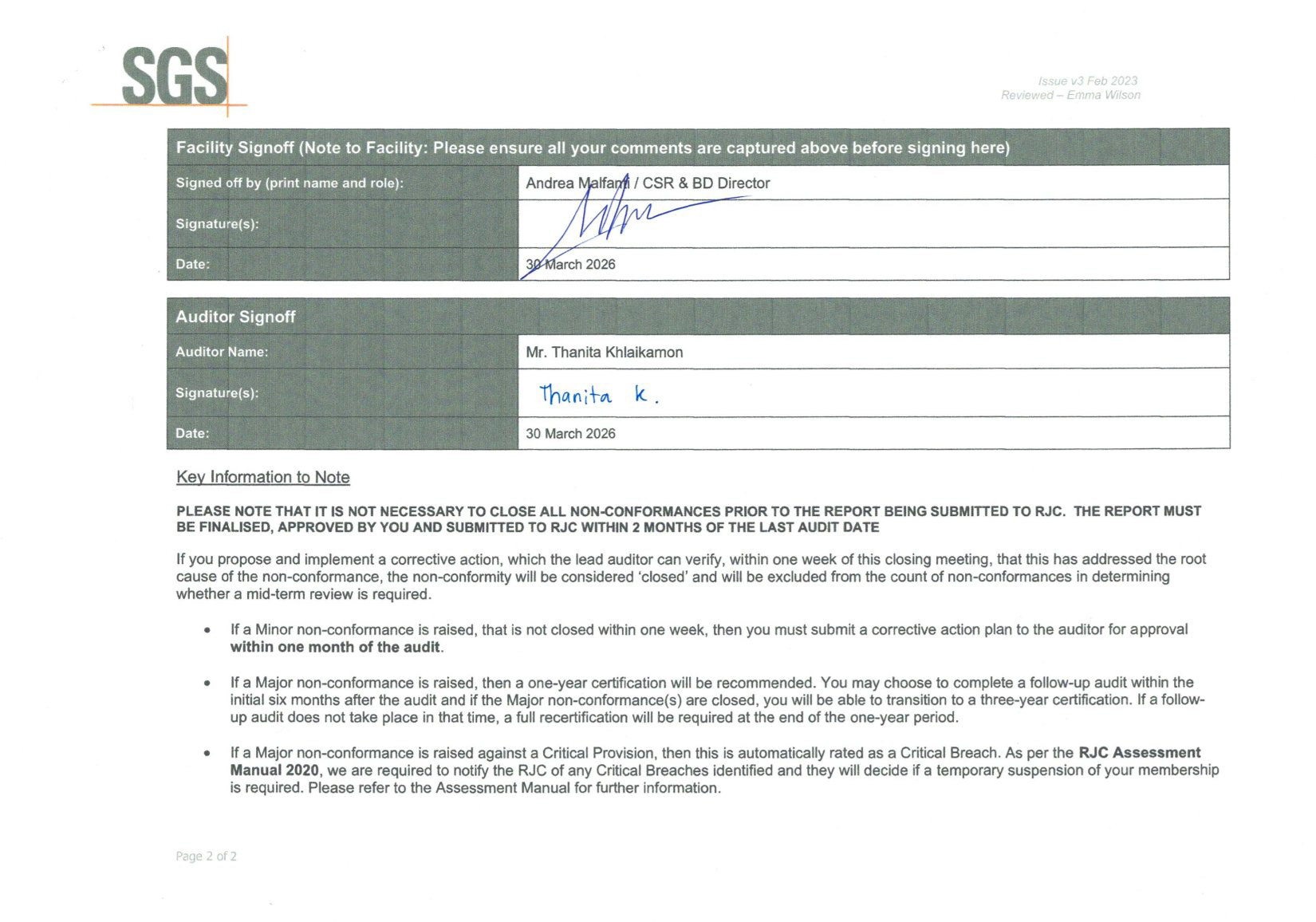 เราได้รับการรับรองการตรวจสอบก๊าซเรือนกระจก ( Greenhouse Gas Verification Statement) จาก SGS ประเทศไทย เมื่อวันที่ 25 พฤศจิกายน 2567 บริษัท ฯ นำโดยคุณซิลวิโอ บินินี่ CEO ได้พัฒนาอย่างต่อเนื่องเพื่อการเติบโตอย่างยั่งยืน และมุ่งมั่นที่จะลดปริมาณการปล่อยก๊าซเรือนกระจกจากกิจกรรมทางธุรกิจ รวมทั้งได้ประเมินและจัดทำรายงานก๊าซเรือนกระจกองค์กรจามมาตรฐาน GHG 14064-1 : 2018