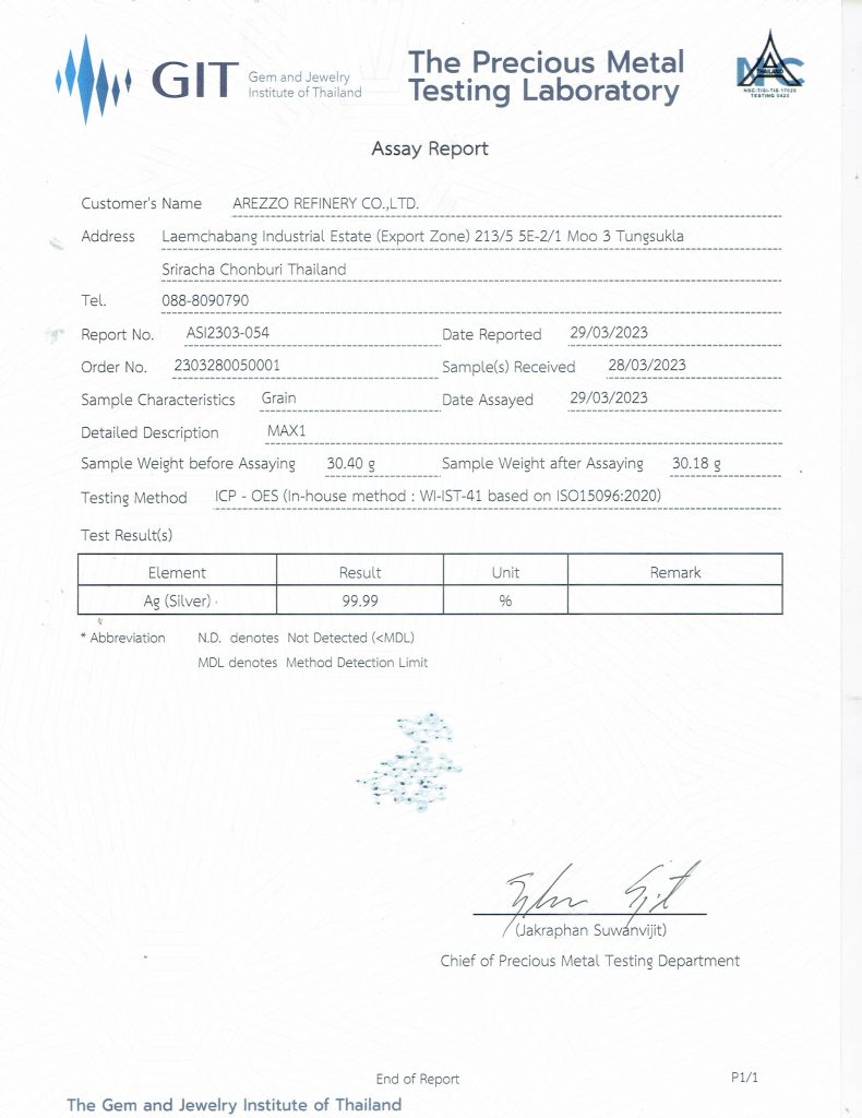 Our chemical laboratory selects the assay methods that best apply to the specific materials in order to accurately determine the precious metal content. The laboratory can carry out both gravimetric analysis (cupellation) and external ( third party ) instrumental analyses XRF ,ICP with the utmost precision. ห้องแลปเคมีของเรามีวิธีการตรวจสอบที่เหมาะสมของแต่ละวัสดุที่มีวิธีการวิเคราะห์ปริมาณโลหะอย่างแม่นยำ สามารถทำการวิเคราะห์ได้ทั้ง gravimetric ,XRF และ ICP